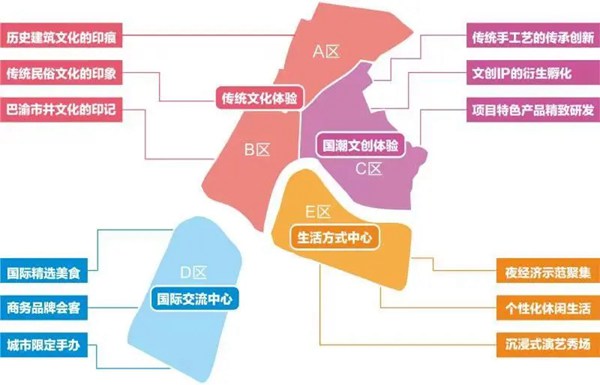 同時,融合商、景、旅、文四大功能于一體,創(chuàng)新商業(yè)模式并獨具特色,在區(qū)域內(nèi)展現(xiàn)重慶八百年的文化生活全景,打造強體驗性的文旅商業(yè)示范基地。