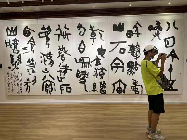 “展出作品雄渾有力,遒勁蒼茫,有重慶山城的奇幻風(fēng)姿,又有西泠印社的獨(dú)特內(nèi)涵,我個(gè)人十分震撼,有一種傳統(tǒng)與現(xiàn)代創(chuàng)新的融合之美。希望接下來會(huì)有更多展覽落地。”重慶市民王培堯?qū)ψ髌氛官澆唤^口。