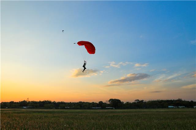 想體驗體驗?zāi)I上腺素飆升的快感嗎?位于梁平機場的重慶攀達高空跳傘梁平基地,自今年8月底試運行以來,已有50多名游客前來體驗高空雙人跳傘,成為梁平旅游打卡新項目。在專業(yè)教練陪同下,從4000米高空躍出機艙,感受以每秒約55米自由落體俯沖大地的刺激, 以及開傘后在高空盡覽梁平美景的震撼。