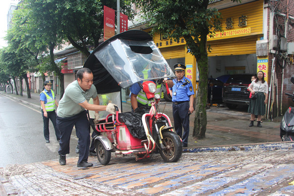 執(zhí)法人員清理占道三輪車。統(tǒng)景鎮(zhèn)供圖