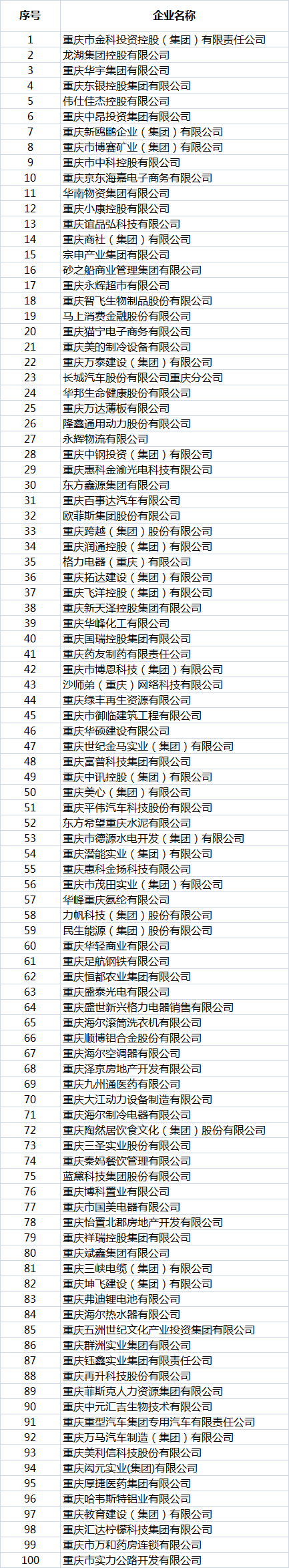 2021年重慶民營企業(yè)100強榜單發(fā)布