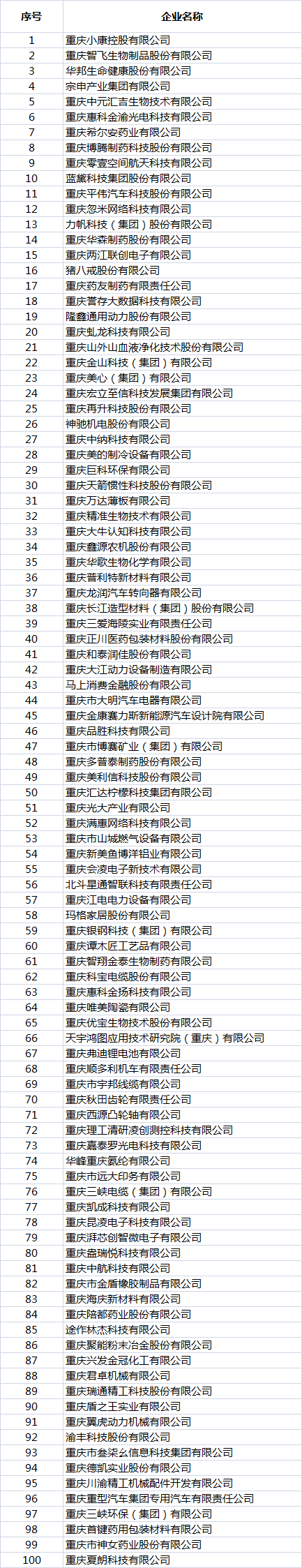 2021重慶民營企業(yè)創(chuàng)新指數(shù)100強榜單