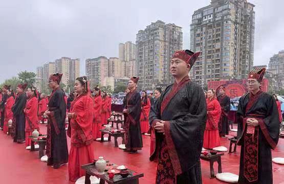 本次集體婚禮共有39對新人和1對金婚夫婦參與。在司儀的引領(lǐng)下,新人們著漢服、行漢禮,經(jīng)過同食禮、飲合巹、執(zhí)手禮、誦婚書、戴簪花、共結(jié)發(fā)、封壇禮等傳統(tǒng)婚禮流程,攜手邁向生活新篇章。