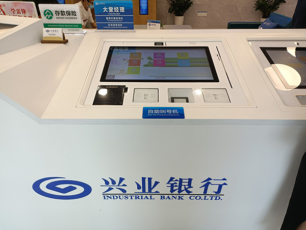 興業(yè)銀行營業(yè)網(wǎng)點配置的自助叫號機。李金攝
