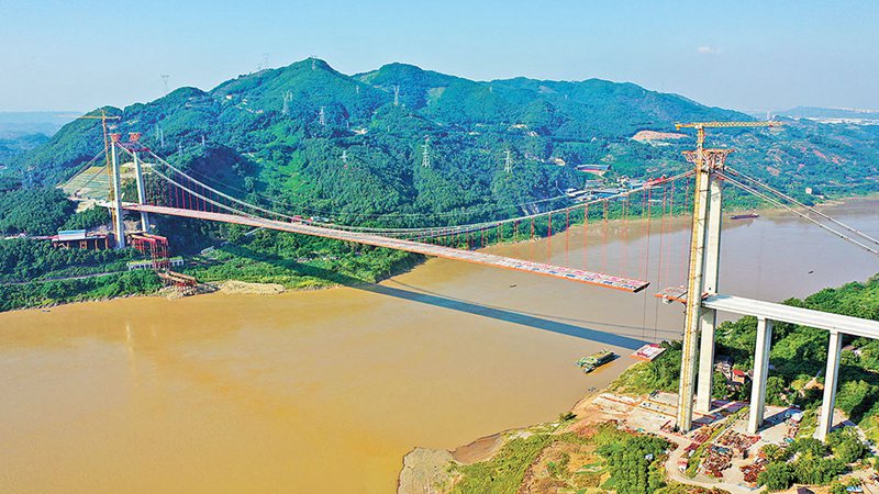 近日,合璧津高速公路江津油溪長江大橋最后一片鋼箱梁順利吊裝,標志著大橋主體結(jié)構(gòu)施工完成。通訊員 蘇盛宇 攝/視覺重慶