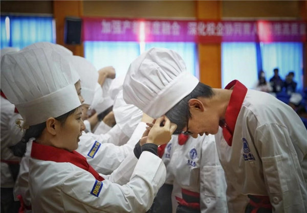 “恭喜同學(xué)們,從今天起,走向了廚師職業(yè)。能在餐飲行業(yè)堅持打拼的人,升職可能性大,職業(yè)發(fā)展空間寬闊,只要肯鉆研,踏實做事,就會有好收獲……”分享創(chuàng)業(yè)故事時,周永林寄語同學(xué)們,要熱愛烹飪行業(yè),傳承工匠精神,帶著情感去學(xué)習(xí)、工作,將每一件細(xì)小、簡單的事努力做到極致。
