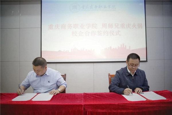 現(xiàn)場,重慶商務(wù)職業(yè)學(xué)院烹飪學(xué)院與周師兄重慶火鍋簽訂校企合作戰(zhàn)略協(xié)議,烹飪學(xué)院在周師兄重慶火鍋掛牌設(shè)立烹飪學(xué)院實踐育人基地,雙方將開展實習(xí)、培訓(xùn)、科研等合作。