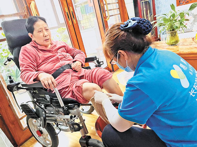 “廖阿姨,馬上就是重陽節(jié)了,提前祝你節(jié)日快樂。”10月12日,在巴南魚洞的怡園小區(qū),居家上門護(hù)理機(jī)構(gòu)的護(hù)理人員又來到了廖阿姨家,幫助臥床的廖阿姨進(jìn)行康復(fù)訓(xùn)練、洗腳、精神慰藉等專業(yè)護(hù)理服務(wù)。據(jù)介紹,自巴南試點(diǎn)長護(hù)保險(xiǎn)兩年多來,已有七成重度失能人員選擇了居家上門護(hù)理服務(wù),讓失能人員生活質(zhì)量和身心健康大幅提升。