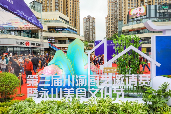 當(dāng)天的舞臺(tái)區(qū)造型以永川非物質(zhì)文化遺產(chǎn)剪紙為主要設(shè)計(jì)元素,將永川豆花、永川景點(diǎn)、永川秀芽、永川豆豉等城市名片以剪紙的形式融入其中,F(xiàn)場(chǎng)還設(shè)置了民俗文化展示區(qū)、互動(dòng)體驗(yàn)區(qū),全面展示永川特色美食和傳統(tǒng)技藝。