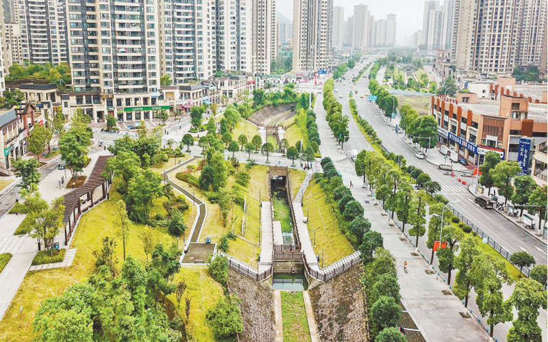 10月17日,巴南區(qū)龍洲灣街道龍澤路,曾經(jīng)的河堤荒地通過(guò)改造,已經(jīng)變身成為水生態(tài)景觀(guān)帶。