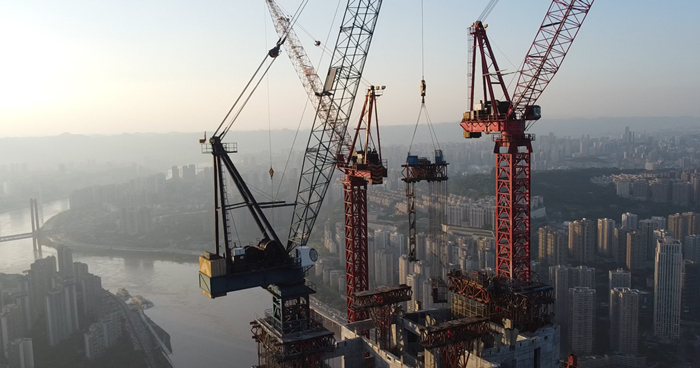 歷時42天 重慶陸海國際中心"空中造樓機"順利拆除