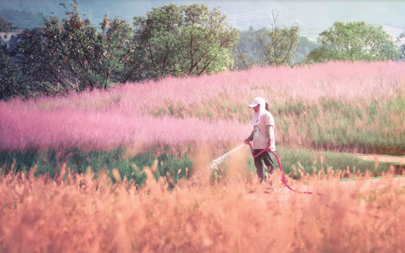廣陽島生態(tài)修復(fù)工程啟動(dòng)后,這里運(yùn)用“理水、豐草”兩大策略,整理地形、改良土壤,引表蓄流,梳理生態(tài)草溝、匯水形成雨水花園,打造出連綿起伏、錯(cuò)落有致的粉黛夢(mèng)境和浪漫花田場景,成為探索巴渝農(nóng)田藝術(shù)化種植的綠色發(fā)展示范。