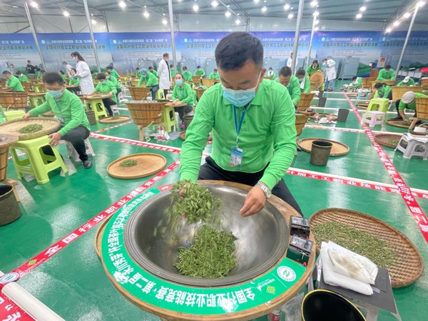 殺青、揉捻、做形、烘干……比賽現(xiàn)場,選手們聚精會神,使用來自永川的鮮茶葉為原材料,根據(jù)自己的思考制作出不同形狀、不同口感的茶葉。