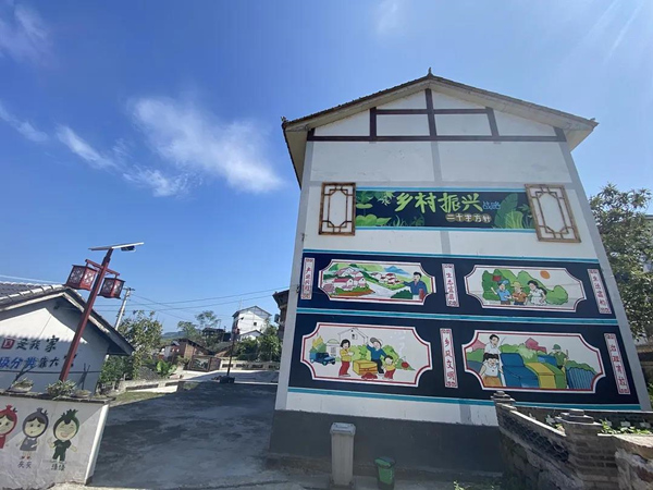 “這里是我們建國村李家?guī)r,整體的風(fēng)格風(fēng)貌打造是根據(jù)這里的地形地貌,融入了豐都本土的民俗文化,再加上有鮮明時代特色的墻繪,讓這里變得很特別!苯▏寰C合服務(wù)專干譚甜婷說。