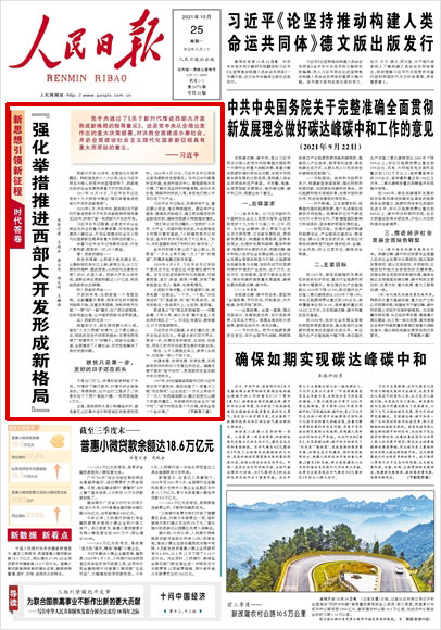 黨中央通過了《關(guān)于新時代推進西部大開發(fā)形成新格局的指導(dǎo)意見》。這是黨中央從全局出發(fā)作出的重大決策部署,對決勝全面建成小康社會、開啟全面建設(shè)社會主義現(xiàn)代化國家新征程具有重大而深遠的意義。