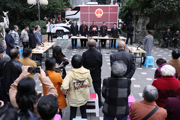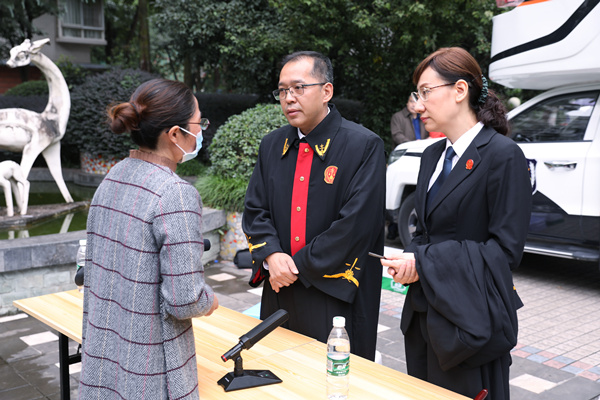 庭審結(jié)束后,法官現(xiàn)場(chǎng)解答群眾的相關(guān)法律問(wèn)題。重慶五中院供圖