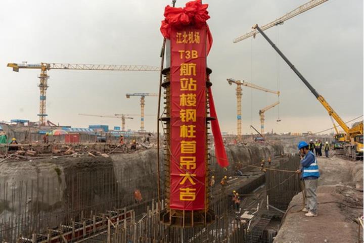 重慶機場T3B航站樓首節(jié)鋼柱順利吊裝