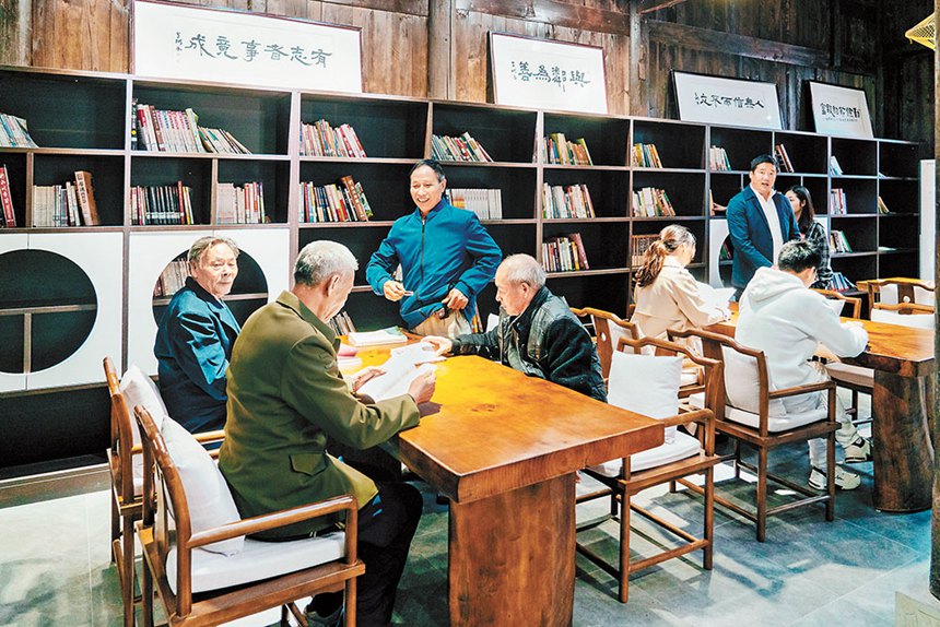 10月28日,永川區(qū)板橋鎮(zhèn)板橋老街,村民們在藝文書院看書。近來年,永川區(qū)穩(wěn)步推進(jìn)“三館一院”建設(shè),建成了一批紅色記憶館、民風(fēng)民俗館,并將歷史文化館、書院(圖書館)等分館(分院)延伸到鎮(zhèn)街、村社和家庭,優(yōu)化提升農(nóng)村公共文化供給,豐富鄉(xiāng)村文化生活。