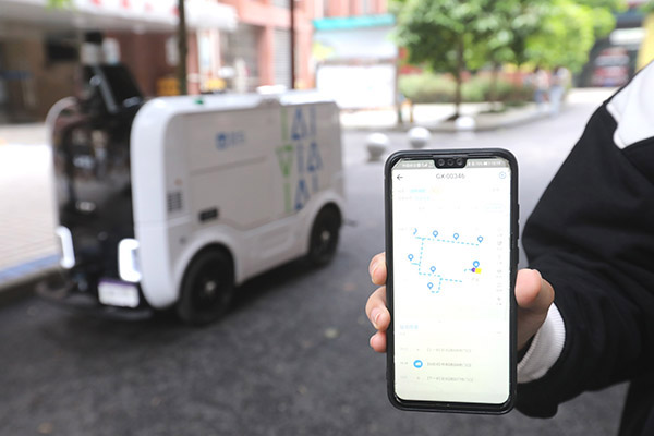 重慶首個無人快遞車在重慶交通職業(yè)學院投用