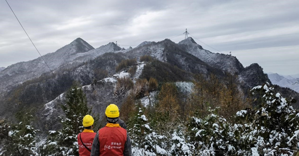 在巫溪縣雞心嶺,國網(wǎng)重慶檢修公司輸電運(yùn)檢一班成員對±800千伏祁韶線開展冰雪天氣特巡。山脊上寒風(fēng)陣陣,工作環(huán)境惡劣,輸電運(yùn)檢人員腳踏積雪,頂著凜冽的寒風(fēng)開展線路特巡檢查工作,巡視人員用無人機(jī)、望遠(yuǎn)鏡、風(fēng)速儀等設(shè)備對線路和觀冰站設(shè)施進(jìn)行檢查和測量,并對線路走廊、導(dǎo)地線、絕緣子串等全面檢查。