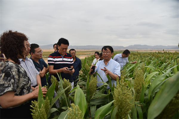 內蒙古烏蘭布和沙漠科研基地,易志堅為專家們介紹情況。重慶交通大學供圖