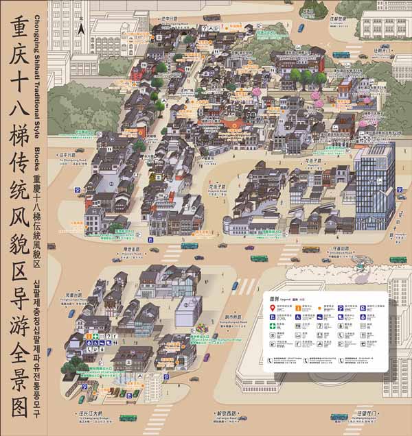 重慶十八梯傳統(tǒng)風(fēng)貌區(qū)導(dǎo)游全景圖。 重慶十八梯傳統(tǒng)風(fēng)貌區(qū)供圖