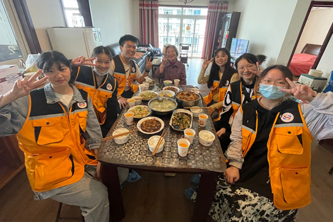大學(xué)生志愿者上門給老人做豐盛的一餐。黎潞攝