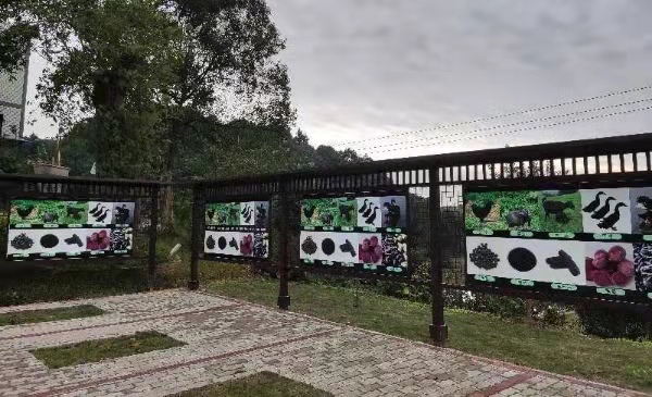 景觀長廊旁栽種的各類花卉和植物茂盛且富有層次感,成為旅客休憩觀景的極佳場地。果蔬文化小品和鄉(xiāng)村振興農耕小品成為觀景長廊的特色代表,健身器材更是滿足了行人健身的需要。小小的長廊承載了蔡家寺村鄉(xiāng)村文化與“黑”產業(yè)文化結晶,同時也能讓游客在休憩的時候邊欣賞風景,邊了解“黑”文化與鄉(xiāng)村文化。