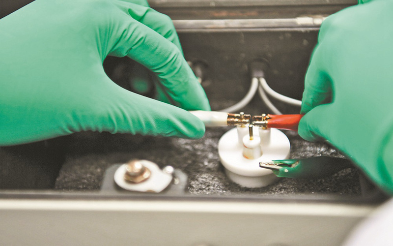 在位于西南大學(xué)發(fā)光分析與分子傳感教育部重點(diǎn)實(shí)驗(yàn)室的電分析化學(xué)實(shí)驗(yàn)室,記者看到,生物傳感器被研究人員放置在一個(gè)方形鐵盒里,在發(fā)生電化學(xué)發(fā)光反應(yīng)時(shí)可以起到避光的作用。傳感器的核心部件是一根小小的探針,探針的左右兩邊,還分別有一個(gè)輔助電極和參比電極。