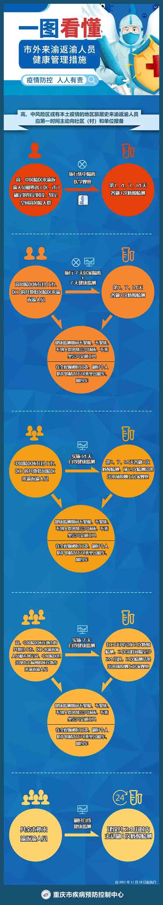 重點(diǎn)地區(qū)來(lái)渝返渝人員健康管理措施。重慶市疾控中心供圖