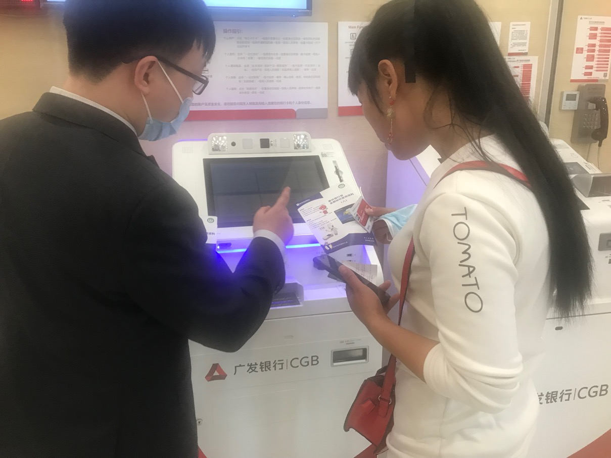 指導(dǎo)客戶使用智能器具(資料圖)。廣發(fā)銀行重慶分行供稿