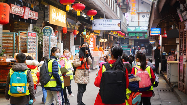 人民網(wǎng)重慶11月30日電 11月28日,由共青團(tuán)重慶市江北區(qū)委、江北區(qū)青少年活動(dòng)中心主辦的“行走的課堂”公益品牌活動(dòng)持續(xù)開(kāi)展,由江北區(qū)衛(wèi)健委推薦的20余名醫(yī)護(hù)人員子女參加了這場(chǎng)探訪巴渝文化的城市行走之旅。