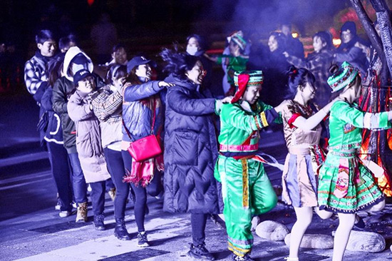 為了讓來訪者感受到最原滋原味的土家風情,中益定制游中還包含了特色篝火晚會:圍著暖暖火苗,跳起熱情奔放的土家擺手舞,喝著豪邁灑脫的“摔碗酒”,吃著中益鄉(xiāng)特色走山羊。