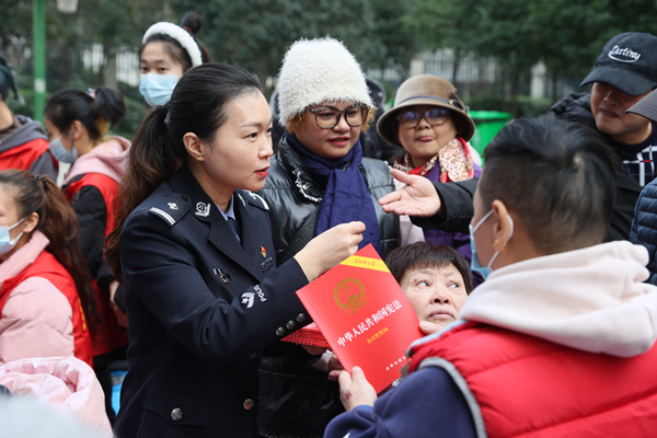 人民網(wǎng)重慶12月4日電 12月3日下午,全國(guó)道德模范、重慶市公安局沙坪壩區(qū)分局磁器口派出所民警何巧組織了一場(chǎng)特殊的法治宣傳,用手語(yǔ)為磁建村社區(qū)群眾宣講憲法知識(shí)。