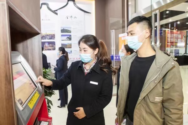 工作人員為市民打印登機(jī)牌。喻梵攝