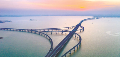 山東省青島市膠州灣跨海大橋美輪美奐。 王 華攝(影像中國)