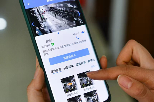 “我們點擊‘美團’‘餓了么’外賣平臺上面店鋪的商家信息,就能看到實時的攝像畫面,我們的網(wǎng)格監(jiān)察員就是隨時查看店鋪是否有,廚房人員未戴口罩、后廚臟亂等多種違規(guī)操作!苯眳^(qū)市場監(jiān)管局副局長艾渝說。