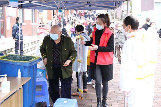 志愿服務(wù)隊伍為居民提供便利。井口街道供圖