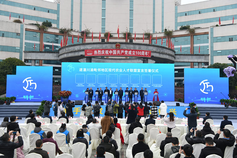 開幕式上,潼南、彭水、遂寧、內(nèi)江等川渝八地聯(lián)合發(fā)布了《遂潼川渝毗鄰地區(qū)現(xiàn)代農(nóng)業(yè)人才聯(lián)盟宣言》,標志著遂潼川渝毗鄰地區(qū)現(xiàn)代農(nóng)業(yè)人才聯(lián)盟正式成立。
