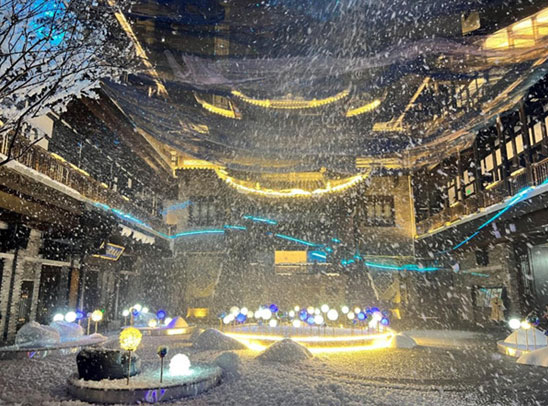 DV(dream view)沉浸式視角,1000坪極光天幕,躺在院子里仰望天空,會(huì)看到流動(dòng)的北極光、漫天的飛雪,身臨其境的奇幻感,穿過(guò)漫長(zhǎng)的億萬(wàn)光年在這里與極光相遇。極光和大雪將每日在長(zhǎng)嘉匯王家大院上演,市民均可前往“重慶長(zhǎng)嘉匯購(gòu)物公園”微信公眾號(hào)免費(fèi)預(yù)約觀賞。