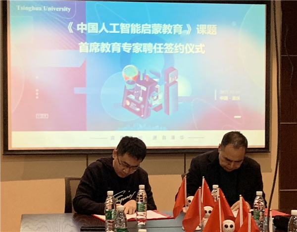 活動(dòng)現(xiàn)場(chǎng),清華大學(xué)人工智能研究院智能機(jī)器人研究中心聘請(qǐng)重慶三峽教育文化研究院院長(zhǎng)陳定凡為《幼小兒童人工智能啟蒙教育》課題組組長(zhǎng)。