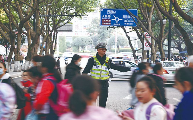 路過的群眾和接送孩子的家長,紛紛贊譽他是守護市民安全出行和歸家的“路標”。校門口來來往往的小學生,也都會親切地稱呼他為“路標伯伯”。