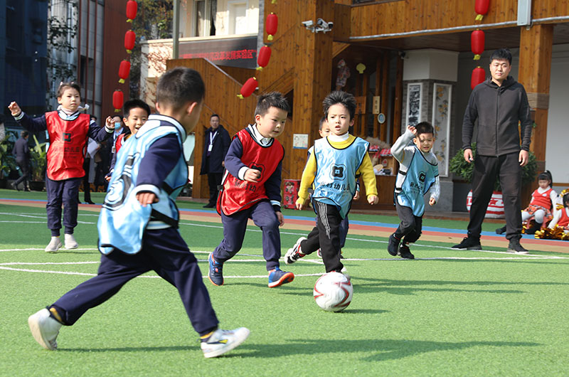 新村幼兒園兒童參加足球活動。葉澤陽攝