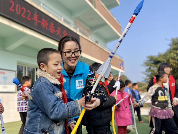 隨后,綦江區(qū)青少年活動中心的老師為新建學(xué)校的孩子們送去科學(xué)技術(shù)課程,讓孩子們制作火箭,了解航天科技,滿足孩子們對太空探索的好奇心。