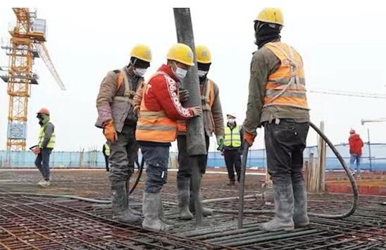 工人在進(jìn)行封頂混凝土灌注。陳國毅攝