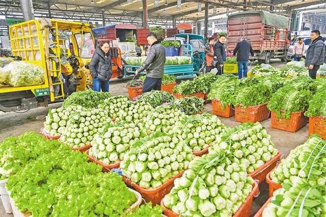 12月28日,重慶雙福國際農(nóng)貿(mào)城,客商正在轉(zhuǎn)運蔬菜。