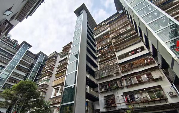 作為云陽(yáng)縣最具代表性的“老舊小區(qū)”之一,杏灣小區(qū)今年完成提檔升級(jí)。現(xiàn)在進(jìn)入小區(qū)最惹人注目的就是矗立在單元樓之間的13臺(tái)嶄新外掛電梯。電梯采用鋼架結(jié)構(gòu),透明玻璃外觀,體積小巧玲瓏,與剛完成提檔升級(jí)的小區(qū)整體環(huán)境相得益彰。