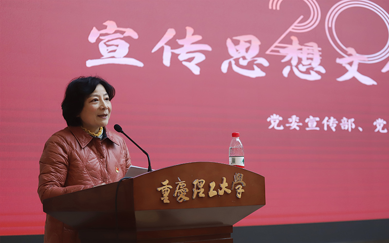 重慶理工大學黨委常委、黨委宣傳部部長、黨委網(wǎng)絡工作部部長李嵐用“主線”“聚力”“融合”總結學校2021年宣傳文化工作。她提到,今年學校聚焦“百年”主線,扎實開展黨史學習教育,創(chuàng)新主題活動,打造紅色文化育人品牌,弘揚“榜樣”力量,選樹先進典型。同時,“聚力”隊伍建設,持續(xù)推進兩個“十百千培養(yǎng)工程”,強化宣傳工作隊伍建設,“融合”宣傳矩陣,健全溝通聯(lián)絡機制,構建大宣傳大思政格局,為落實立德樹人根本任務推進學校教育事業(yè)高質(zhì)量發(fā)展提供了思想保證和精神力量。