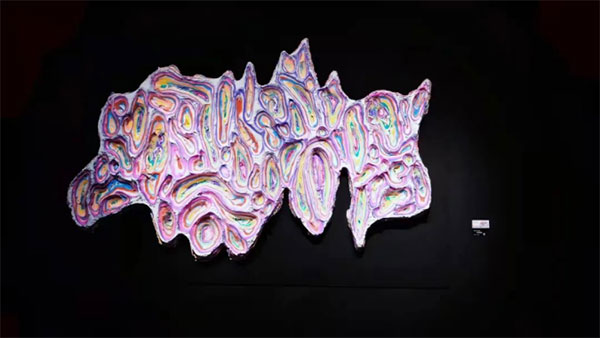 據(jù)了解,本次展覽展出青年藝術(shù)家李軍政最新創(chuàng)作,共計(jì)30余件精品。在整個(gè)黑色典雅的展廳中,藝術(shù)家的作品顯得分外生動(dòng),色彩大膽艷麗。與其他架上繪畫有所不同的是,平常用于手工手作的“超輕黏土”成為了藝術(shù)家藝術(shù)創(chuàng)作的材料媒介,這些作品有的是3D立體形態(tài),也有的是自然生長(zhǎng)的狀態(tài)?,F(xiàn)場(chǎng)觀展的來賓無不驚嘆藝術(shù)家的創(chuàng)造力及扎實(shí)的基本功。其中,藝術(shù)家根據(jù)展廳的規(guī)劃現(xiàn)場(chǎng)創(chuàng)作的作品“皮層2021-43”,用各色超輕黏土層層疊加,形成一個(gè)巨大的平面,然后再用刀具慢慢刻成起伏的形態(tài)。整個(gè)畫面色彩層次靈動(dòng),同時(shí)與有趣的雕刻成型的圖案結(jié)合,讓人立刻聯(lián)想到山城的樣子。