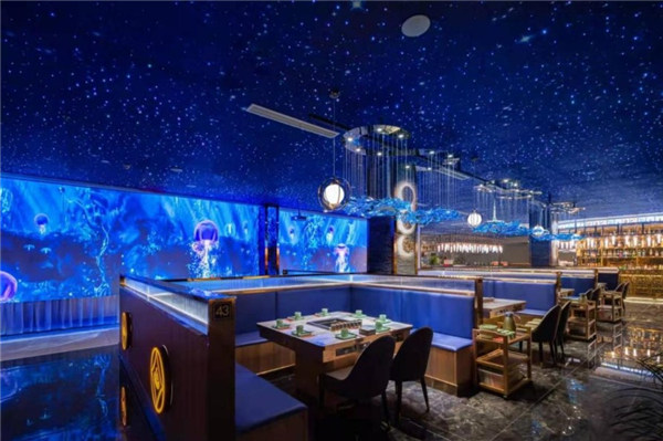 據(jù)了解,大路拼·互聯(lián)網(wǎng)智能火鍋旗艦店位于重慶市南岸區(qū)騰龍大道10號(hào),占地2100㎡。店內(nèi)通過(guò)聲、光、電、5D全息技術(shù)、5G技術(shù)、智能家居,營(yíng)造出科技、時(shí)尚、動(dòng)感的場(chǎng)景。這里不僅是火鍋餐廳,還是海洋世界,是科技館,是新奇特農(nóng)產(chǎn)品超市,是兒童樂(lè)園,是音樂(lè)酒吧,還是小酒館……無(wú)論是在大廳或是包房,食客在吃火鍋時(shí)可以欣賞到波瀾壯闊的海浪、沙灘、森林等“自然風(fēng)光”,現(xiàn)場(chǎng)效果如同身臨其境,帶給顧客全方位智能化體驗(yàn)。